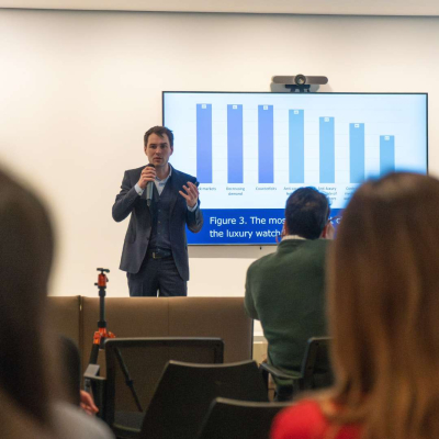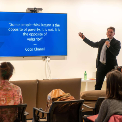 At the book launch event held on April 26 in the student lounge of Franklin University Switzerland, the authors delved into topics from the book’s eight chapters, which expand on luxury management and connect to multiple research fields. The gathering provided students and faculty from both FUS and USI with a deep dive into the book and a unique opportunity to engage personally with the authors, fostering learning and idea development. Throughout the event, the authors engaged in a lively dialogue that guided the audience through the extensive data collection efforts and the multiple theory angles used in the book, including Gestalt theory and functional theories.